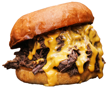 120 gr. dana eti, triple cheddar peyniri, tiftik et,karamelize soğan, BBQ sos, mayonez