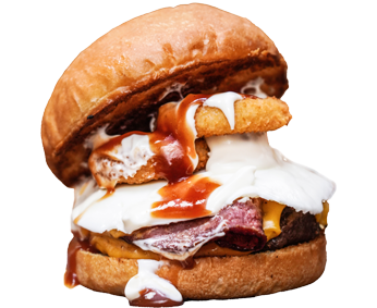 120 gr. dana eti, double cheddar peyniri, göz yumurta,,dana bacon, soğan halkası,mayonez,BBQ sos